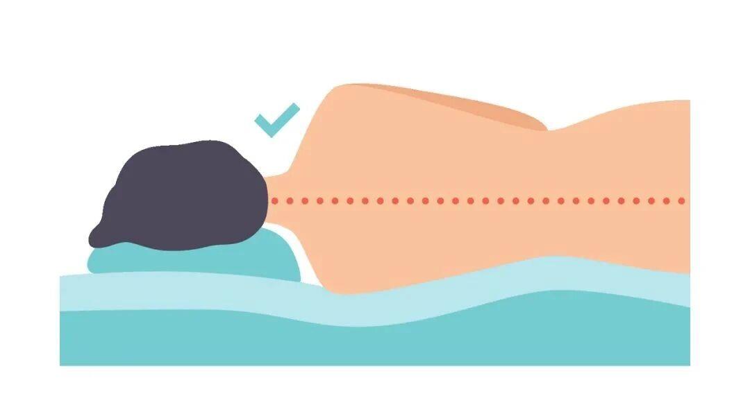 仰卧时枕头的高度不宜过高或过低,压实后,与拳头等高或略高为宜。并且枕头需要放置到整个颈椎后侧,完全承托住颈椎,让其更好地放松。